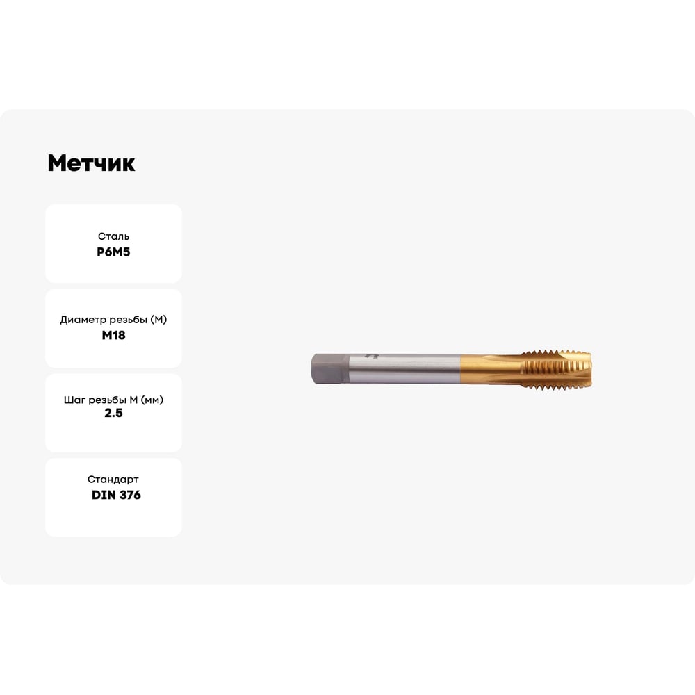 Метчик м/р WOLFSTAR M18х2,5 Р6М5/М2 DIN376 TiN, со спирал.подточкой, tn51825