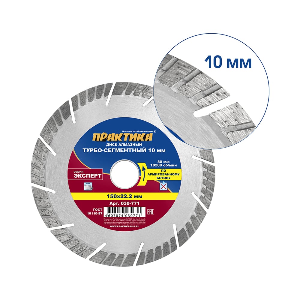 Диск алмазный Эксперт по армированному бетону (150х22.2 мм) ПРАКТИКА 030-771