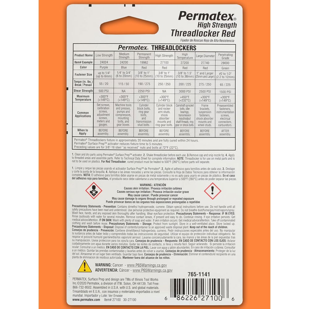 Фиксатор резьбы сильной фиксации PERMATEX красный 6мл. 27100