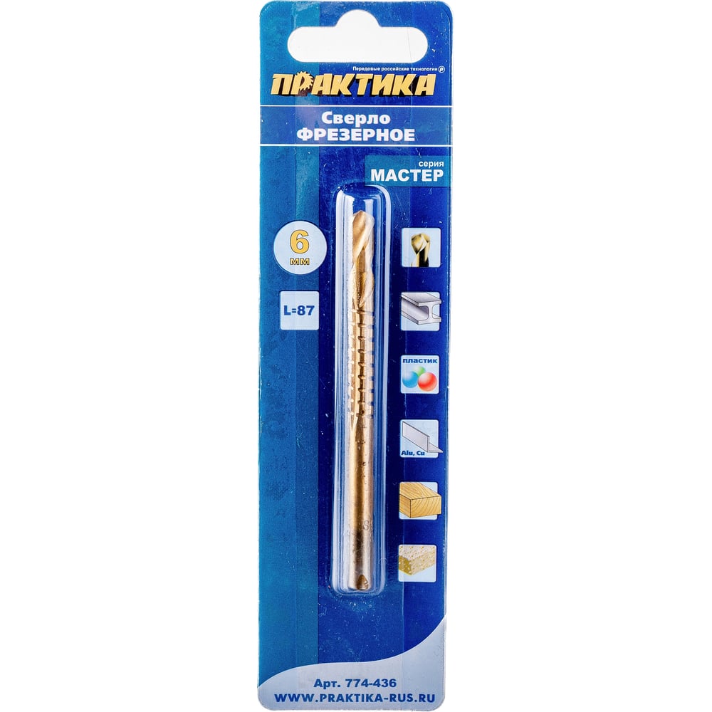 Сверло фрезеровальное универсальное (6х87 мм) ПРАКТИКА 774-436
