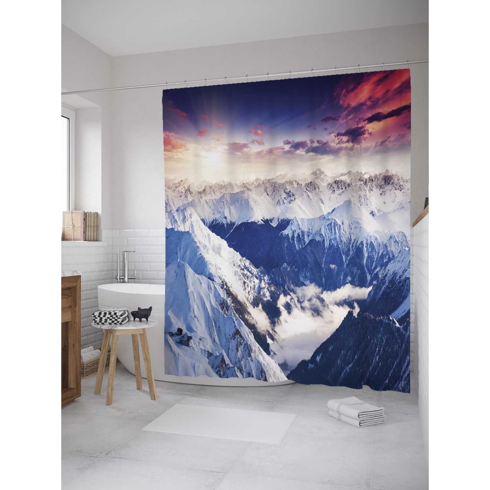 Шторка-занавеска для ванной JOYARTY Солнечные заснеженные горы sc_10892