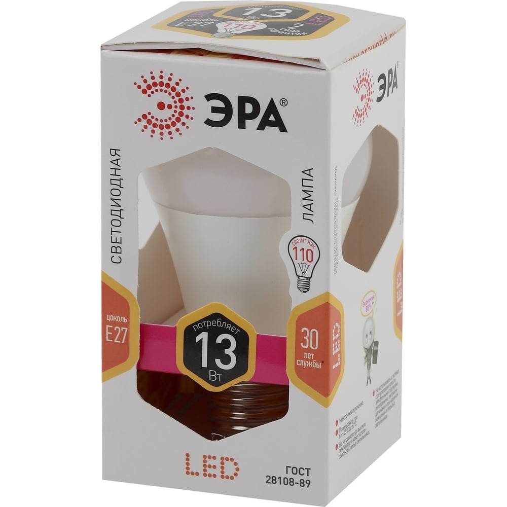 Светодиодная лампа ЭРА LED smd A60-13W-827-E27 Б0020536