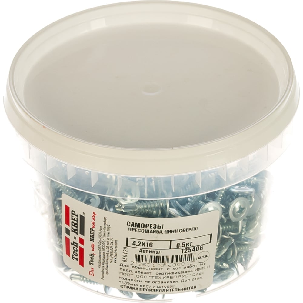 Саморез 4,2*16 прессшайба Tech-Krep цинк сверло 0,5кг (312 шт.) 125406