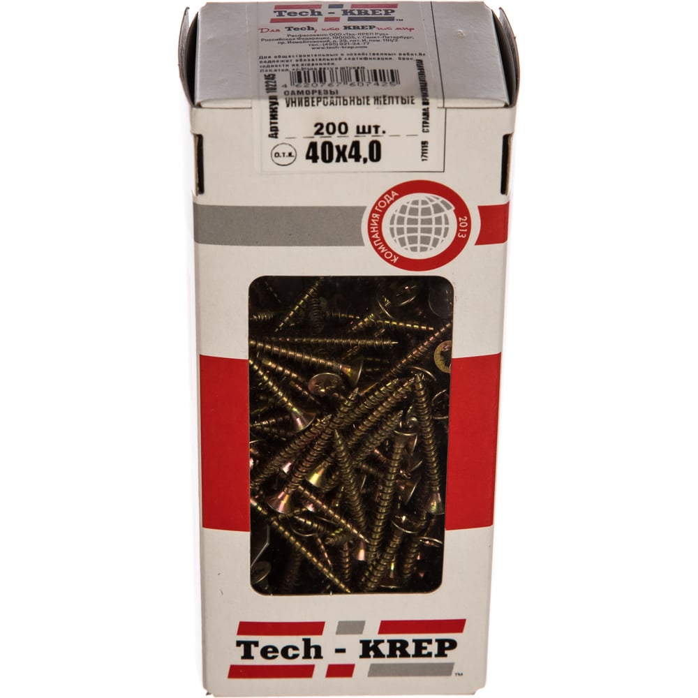 Универсальный саморез Tech-Krep 40х4,0 мм 200 шт желтый, коробка с окном 102245