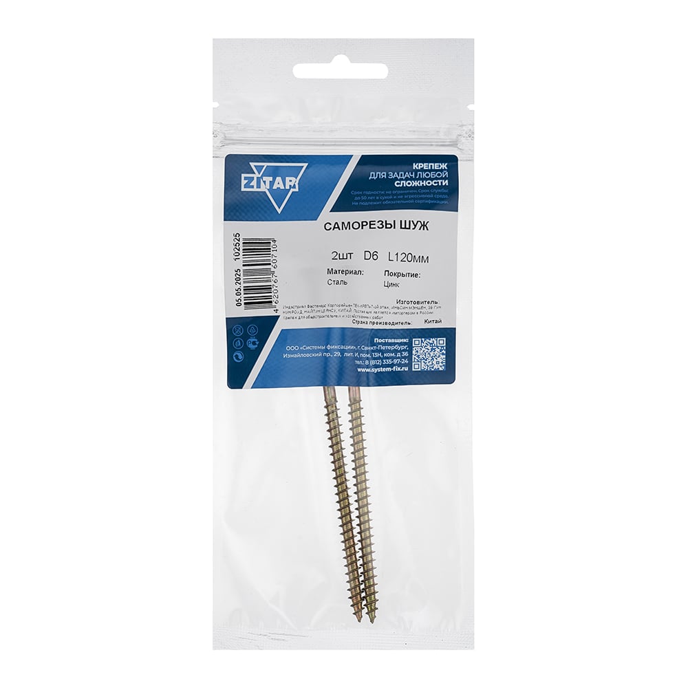 Саморез ШУж с потайной головкой 6,0x120 мм, 2 шт в пакете Zitar 102525