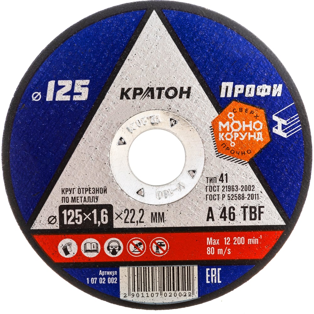 Круг отрезной по металлу A46TBF (125х1.6х22.2 мм) Кратон 1 07 02 002