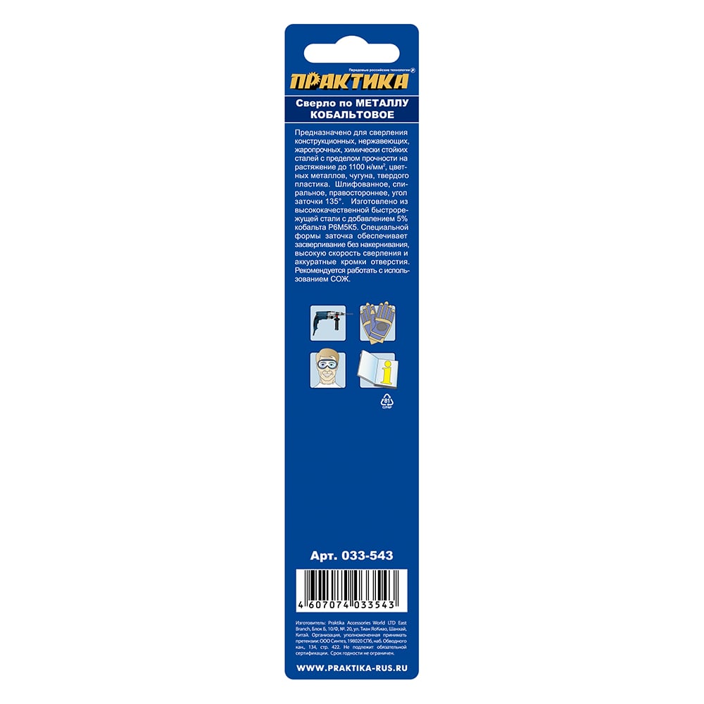 Сверло по металлу кобальтовое (8х117 мм) ПРАКТИКА 033-543