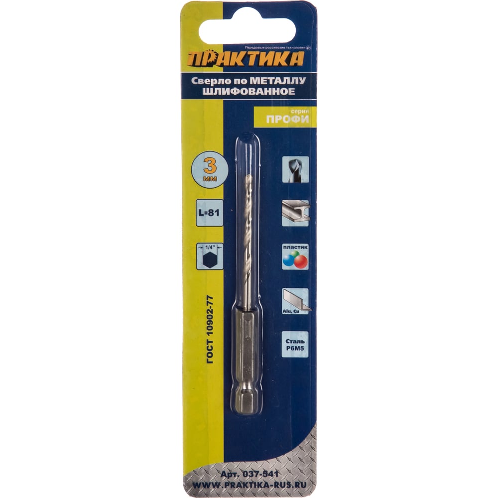 Сверло по металлу (3х81 мм; HEX 1/4) ПРАКТИКА 037-541