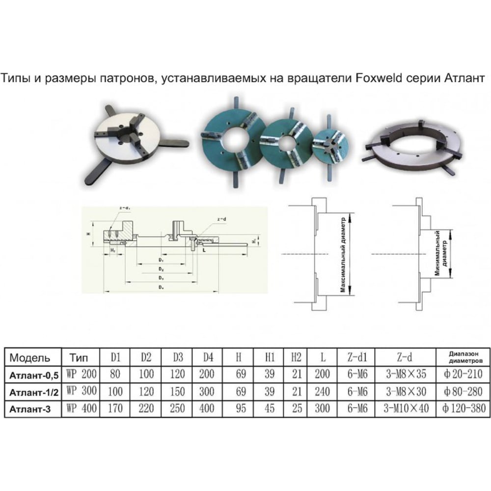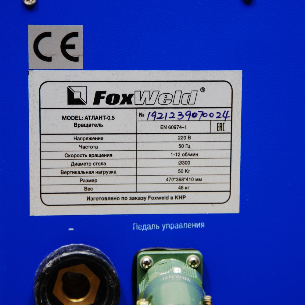 Вращатель Атлант-0.5 макс. вес детали 50 кг; с патроном, педалью Foxweld 1921