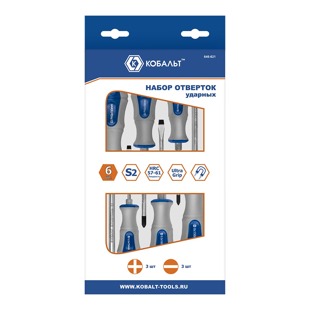 Набор отверток ударных Ultra Grip S2 КОБАЛЬТ 646-621