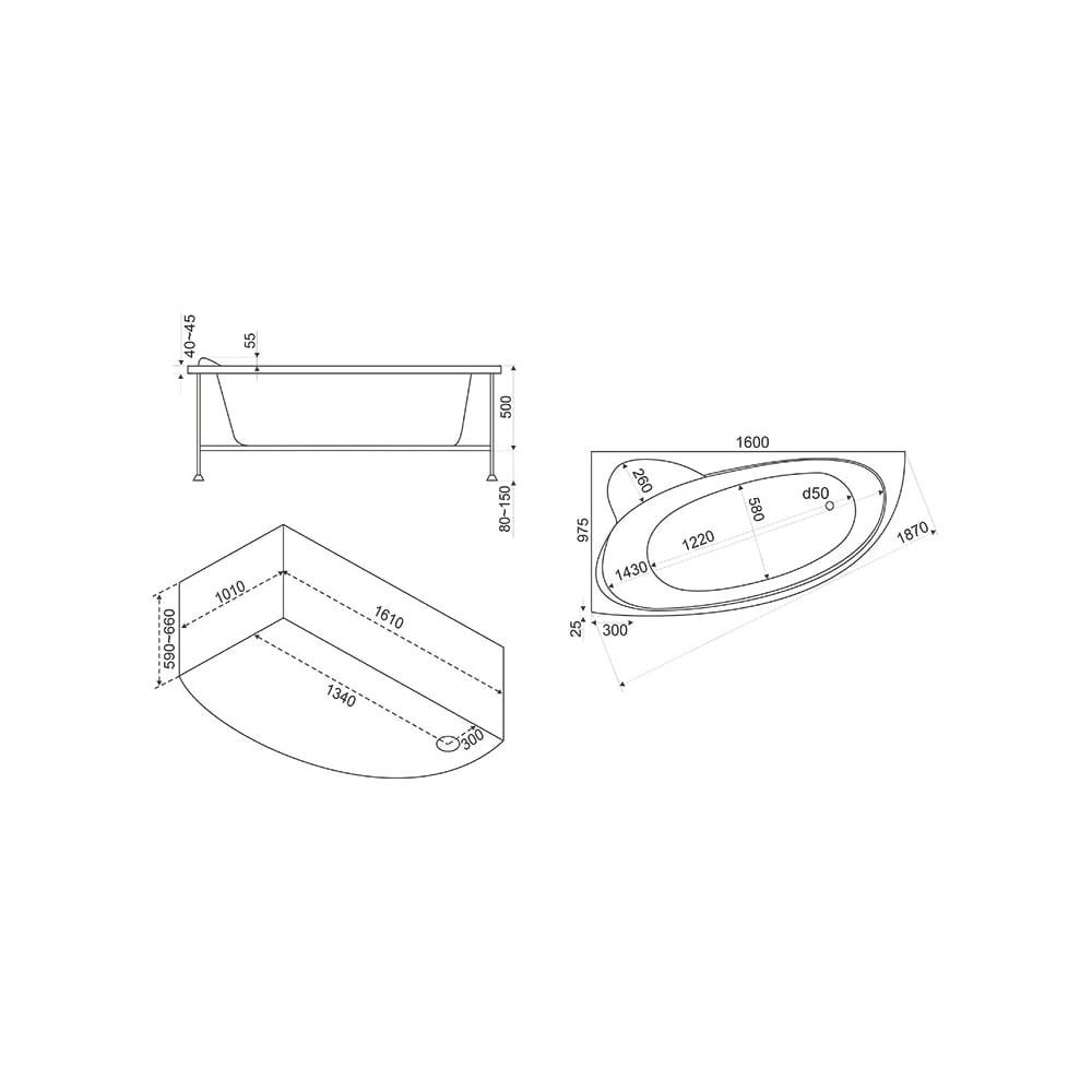 Ванна BAS Сагра левая, 1600х1000 каркас, комплект д/с В 00031