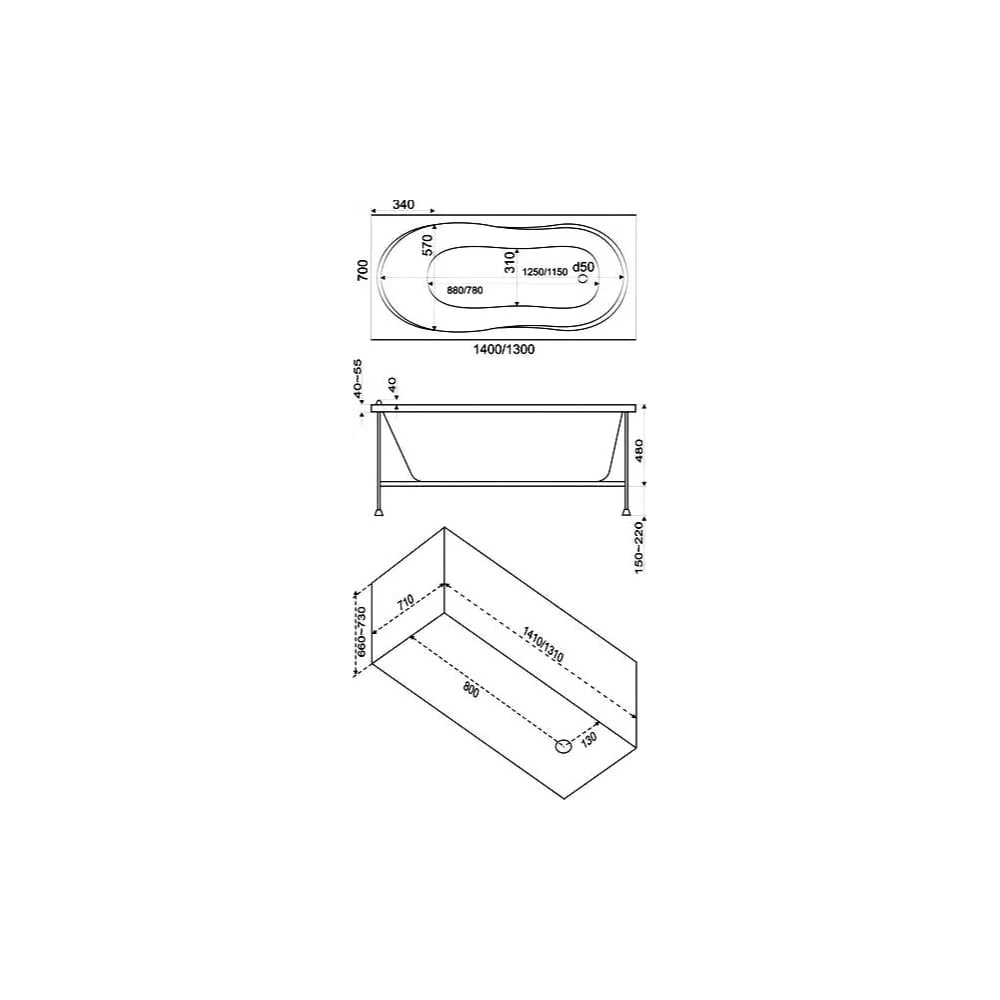 Ванна BAS Тесса 1400х700 каркас, комплект д/с В 00036