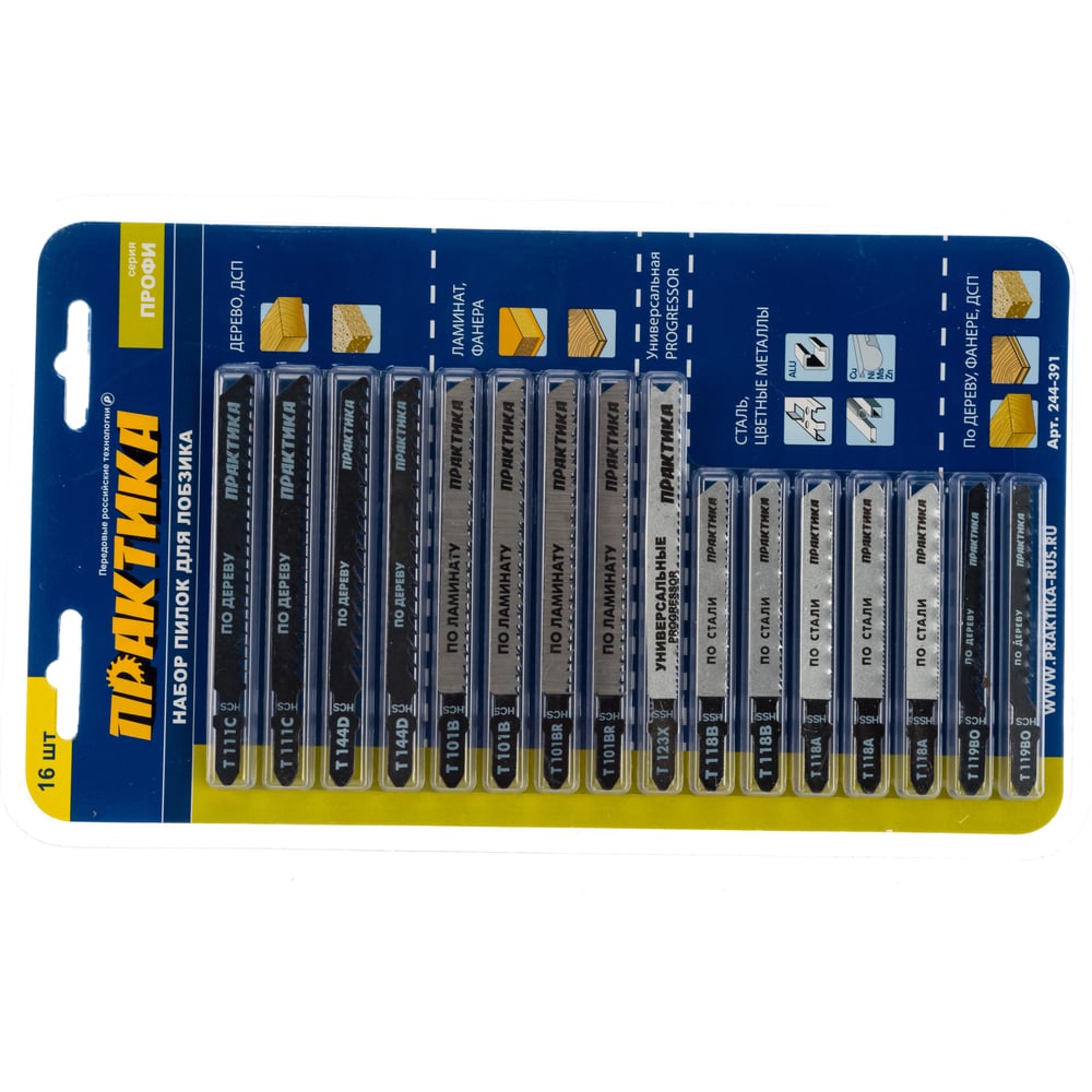 Набор пилок для лобзика универсальный (16 шт.) ПРАКТИКА 244-391