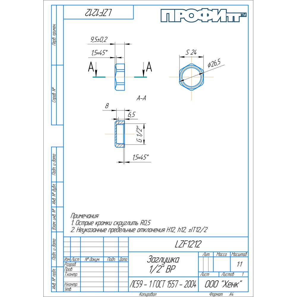 Латунная заглушка Профитт 9274696