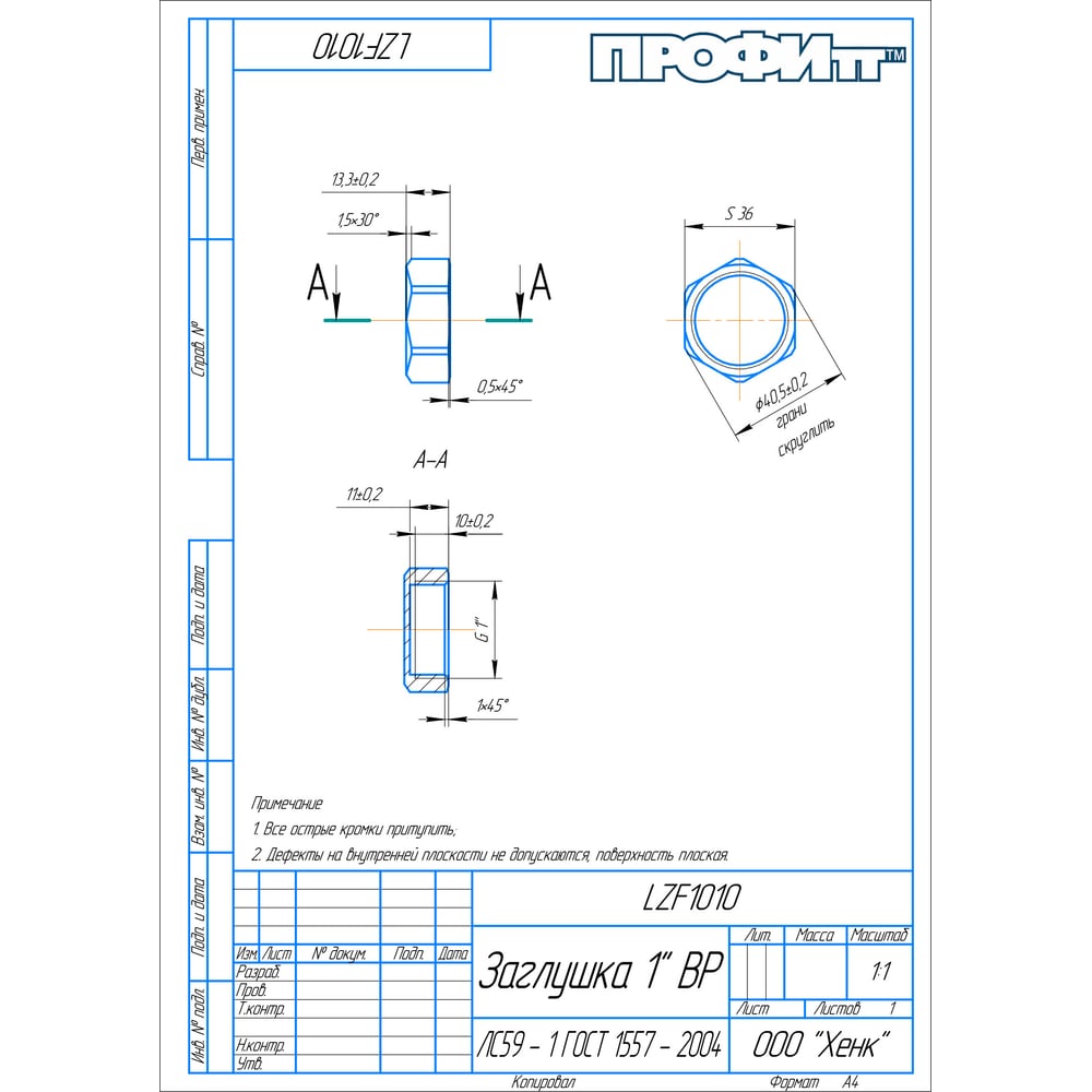 Латунная заглушка Профитт 9274733