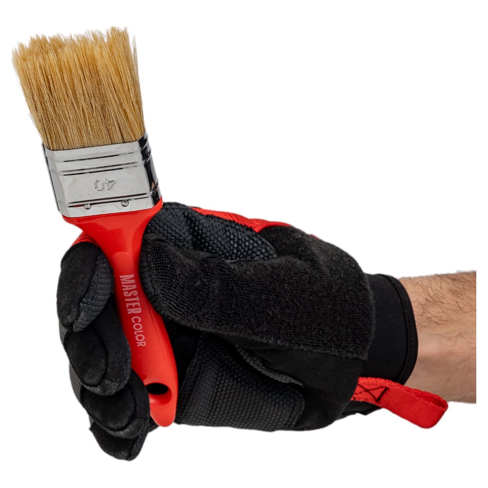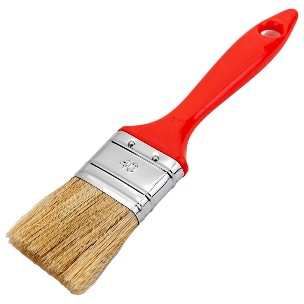 Флейцевая кисть, толщина 12мм, 70% ПБT / 30% светлая натуральная щетина, нержавеющий обжим, пластиковая ручка, ширина 40мм МASTER COLOR 30-0122