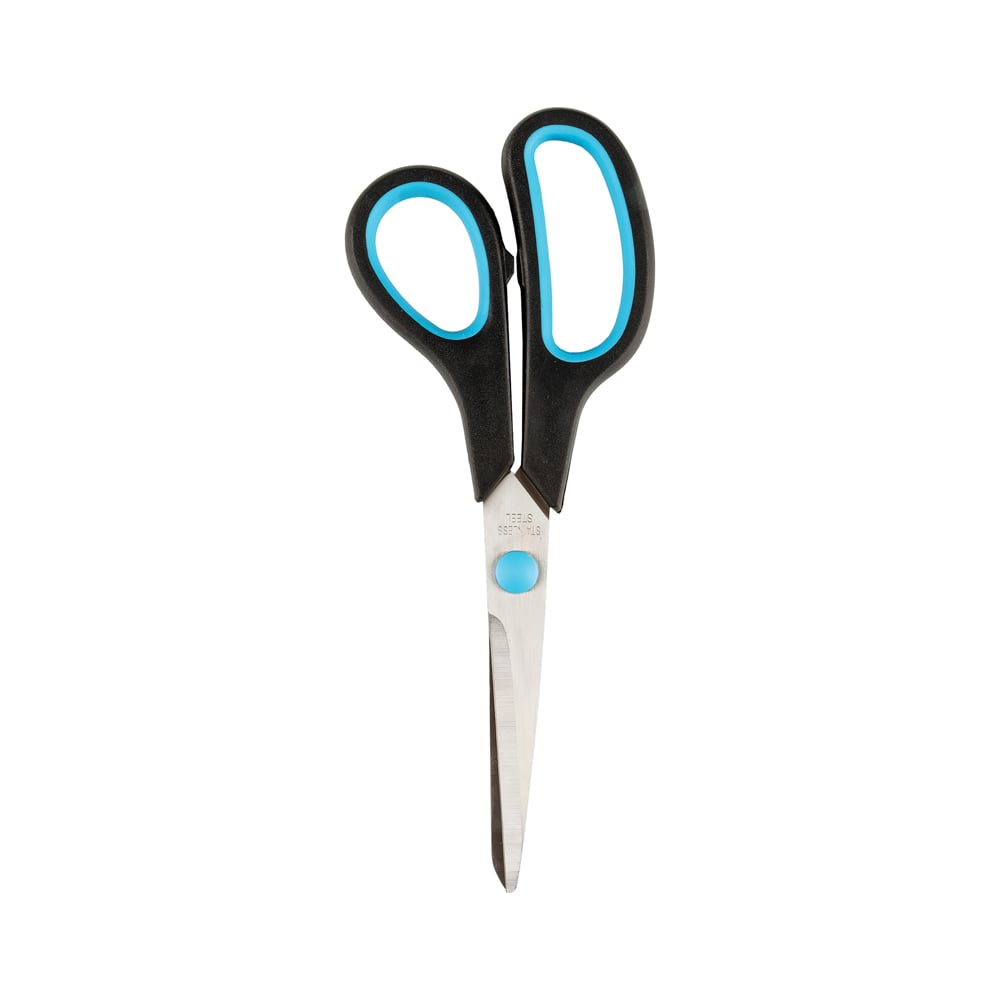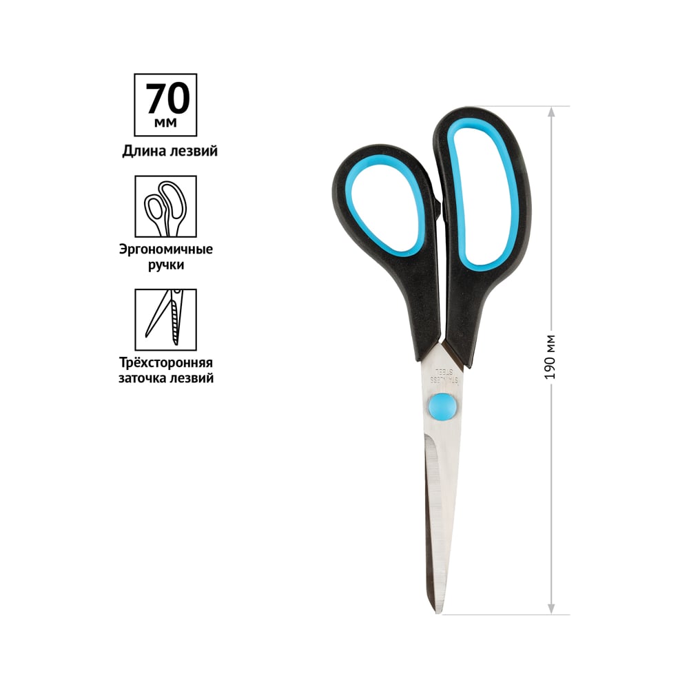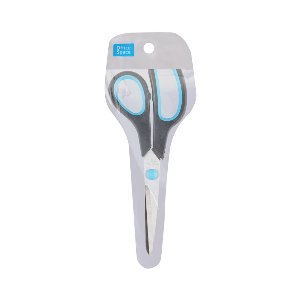 Ножницы Office Space 19 см эргономичные ручки черные с синими вставками ПВХ чехол с европодвесом 264903
