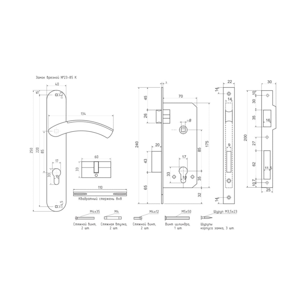 | Удаление ключевого отверстия (Backset) | 40 мм |