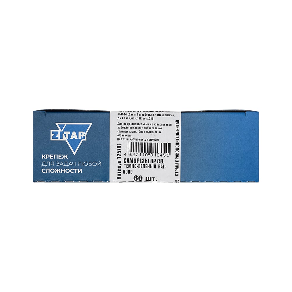 Саморез КР со сверлом, 5,5x19 мм, RAL-6005 темно-зеленый, 60 шт. в коробке с окном Zitar 125701