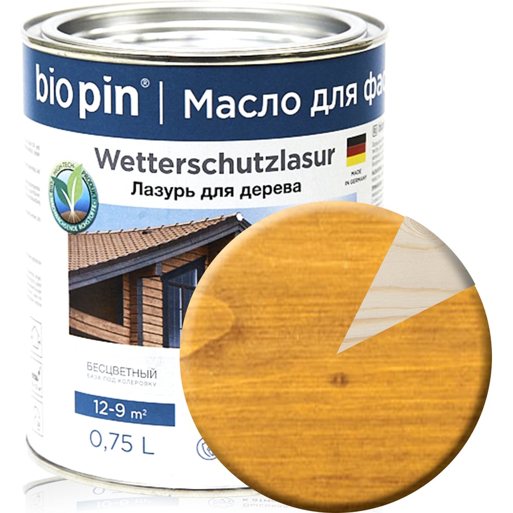 Лазурь для дерева BIO PIN 2241 Wetterschutzlasur в цвете ДУБ 0,75 л 22411I101