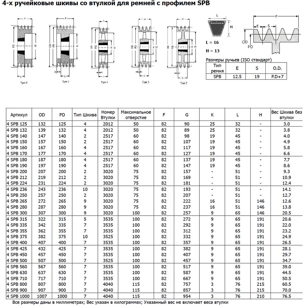 | Тип посадочного отверстия | под втулку Taper Bush |