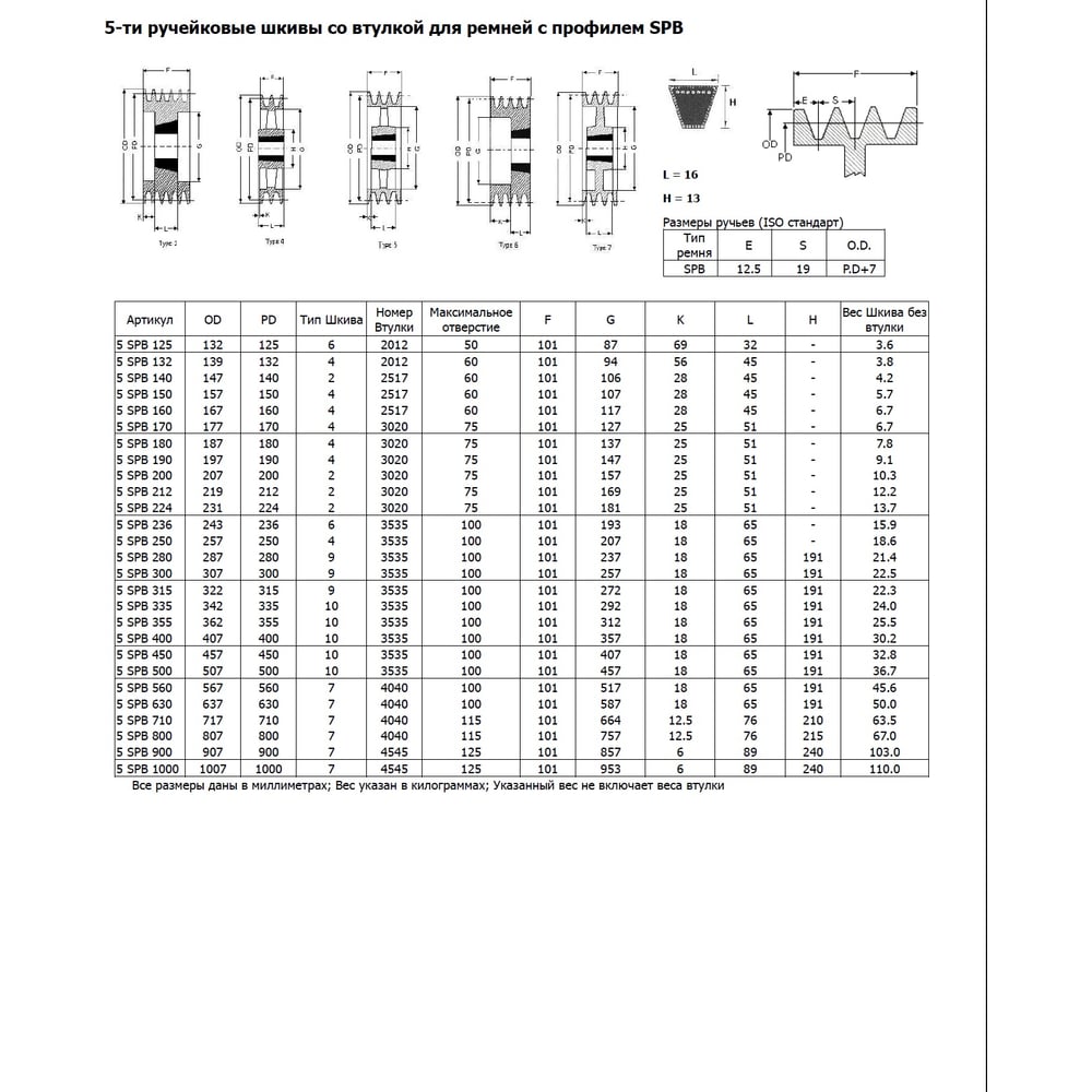 | Тип посадочного отверстия | под втулку Taper Bush |