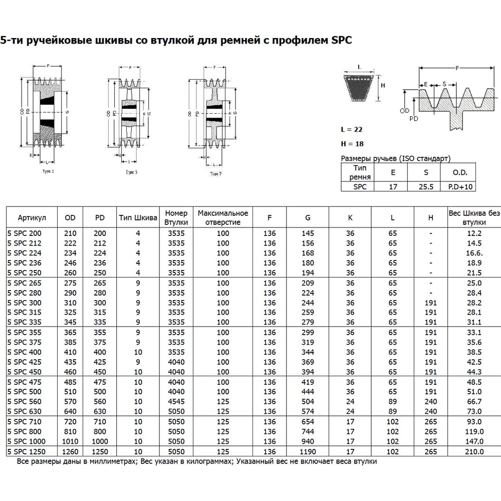| Тип посадочного отверстия | под втулку Taper Bush |