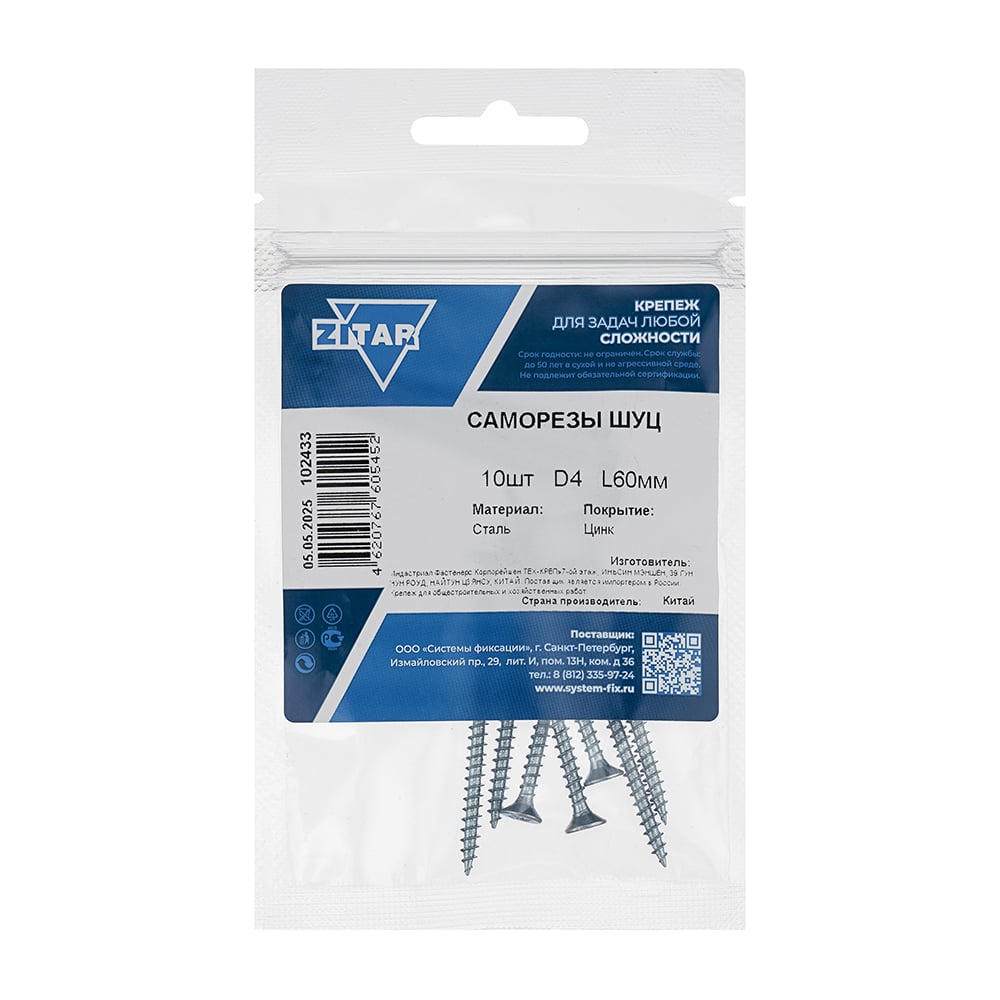 Саморез ШУц 4,0х60 потайная головка 10 шт, пакет Zitar 102433