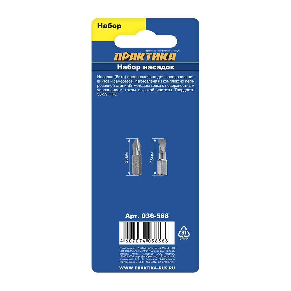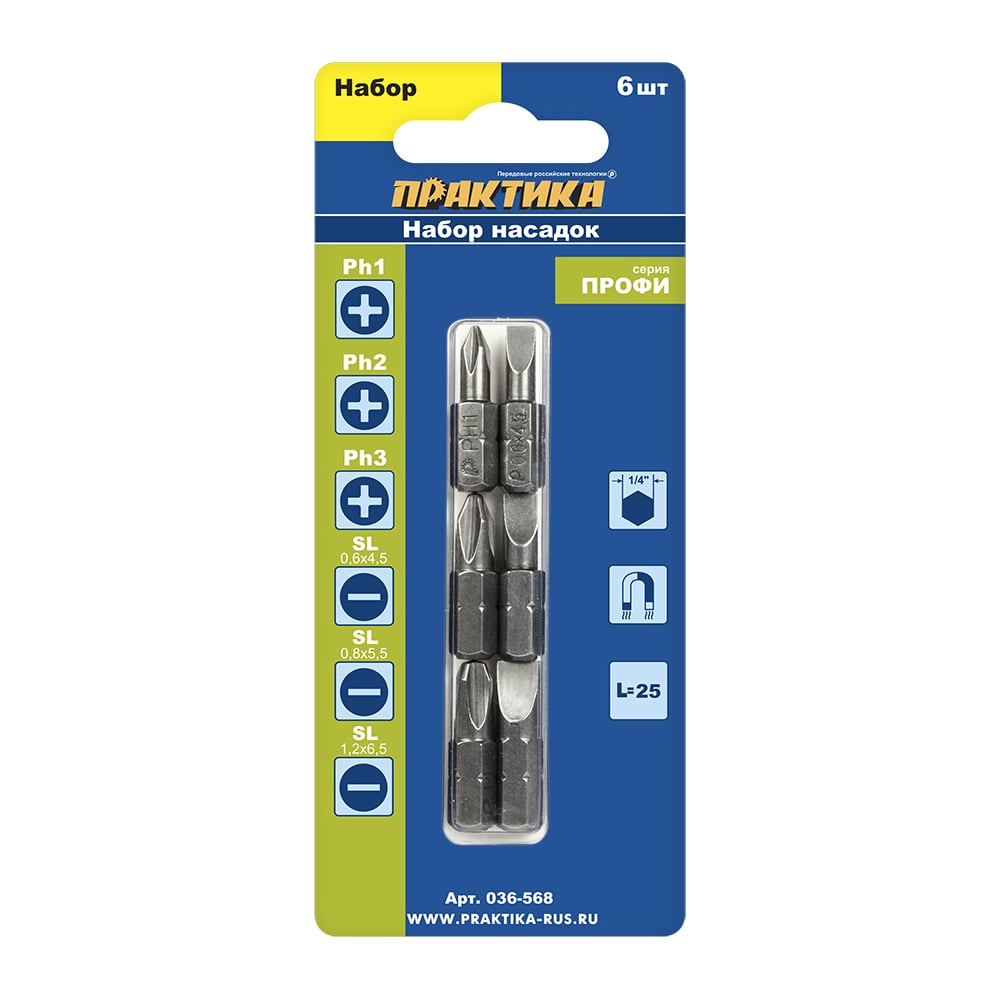 Набор бит (6 шт; PH; SL; 25 мм) ПРАКТИКА 036-568