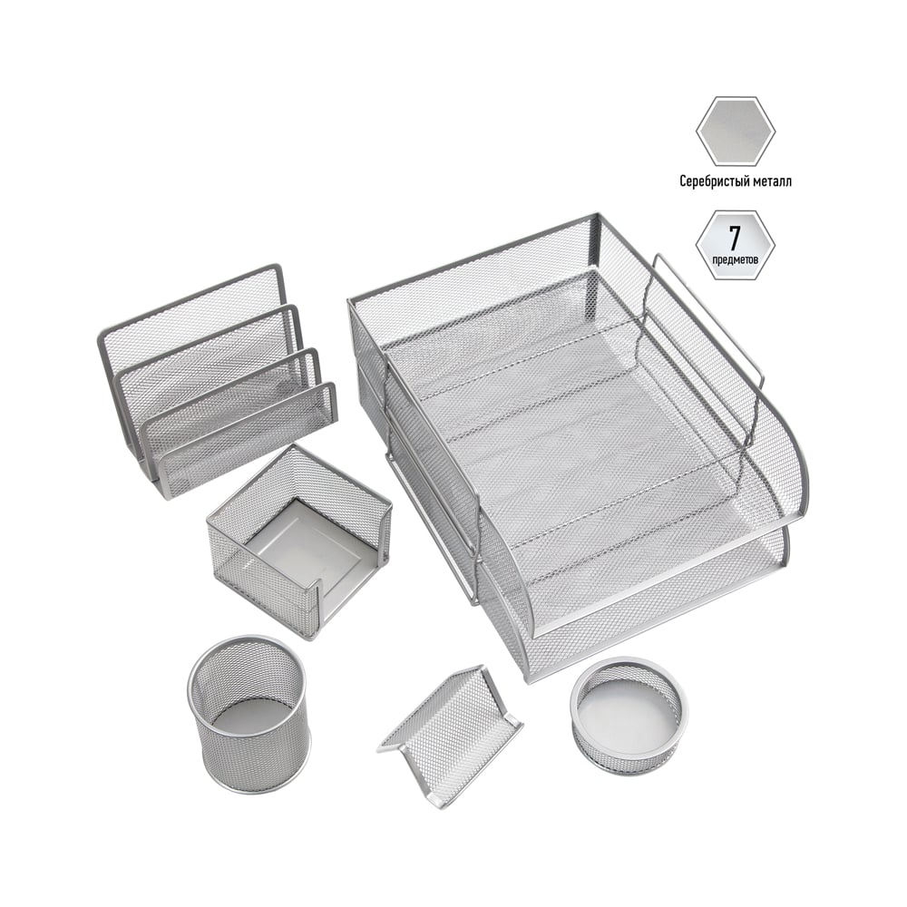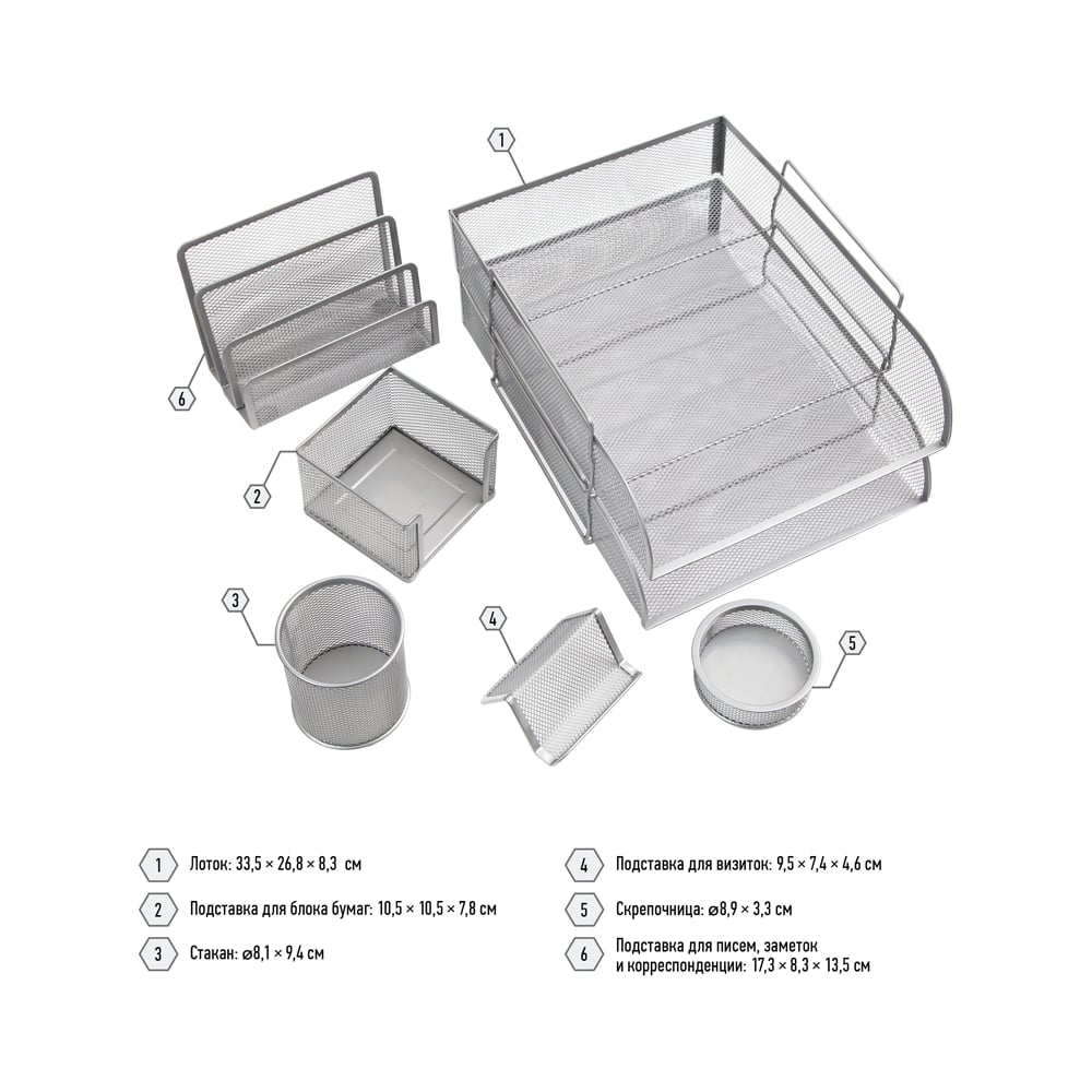 | В наборе | поддоны для бумаг/подставки для бумаг/подставки для канцелярских/пишущих принадлежностей/для визиток |