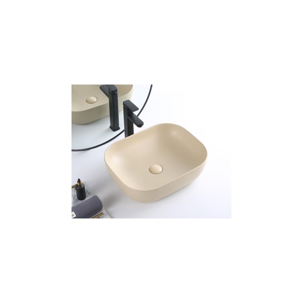 Керамическая накладная раковина BelBagno прямоугольная, бежевая матовая BB1302-H316