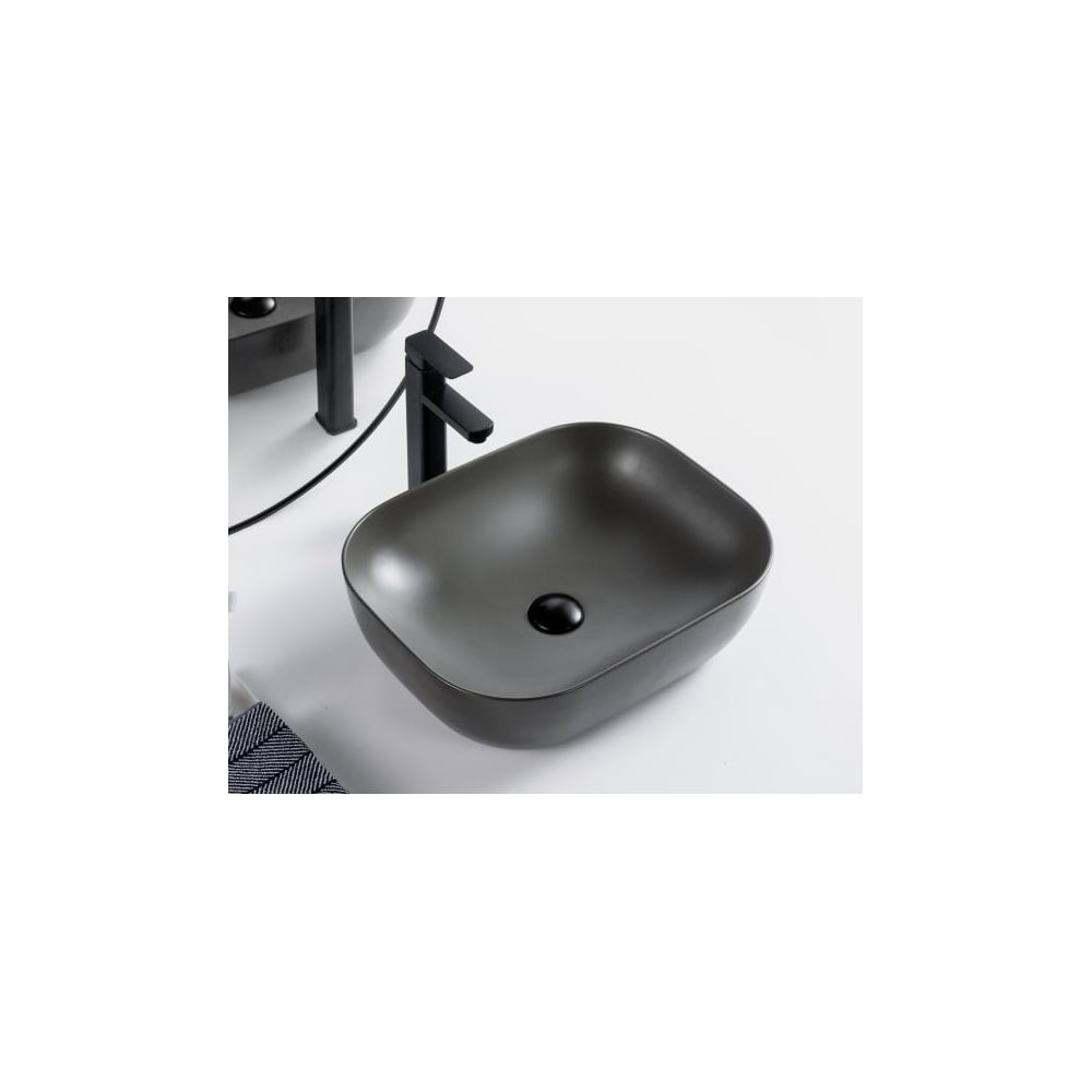 Керамическая накладная раковина BelBagno прямоугольная, серая матовая BB1302-H311