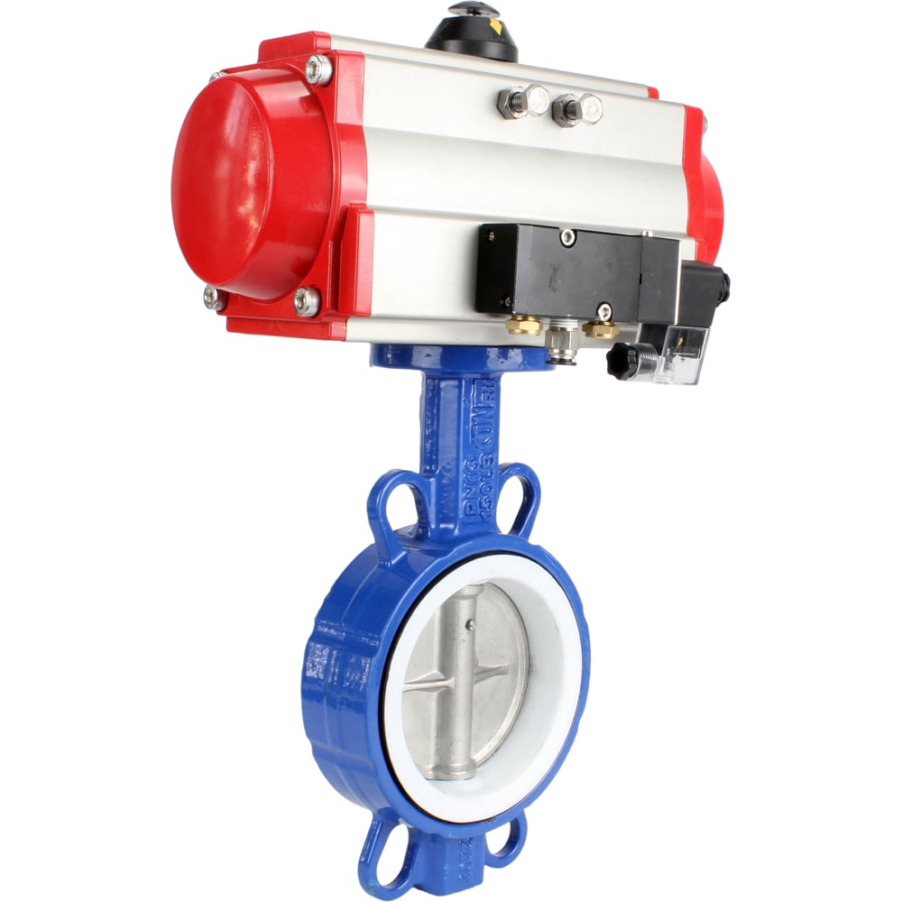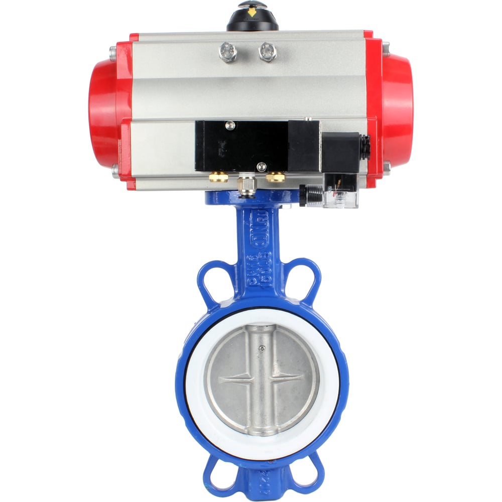 Затвор DN.ru WCB-316L-PTFE Ду65 Ру16 с пневмоприводом, пневмораспределителем D050-02404