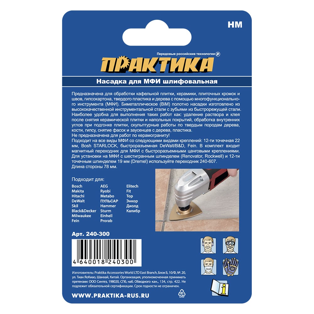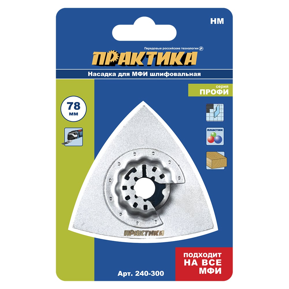 Шлифовальная насадка для МФИ, по плитке и дереву ПРАКТИКА дельтавидная, HM, 78 мм 240-300