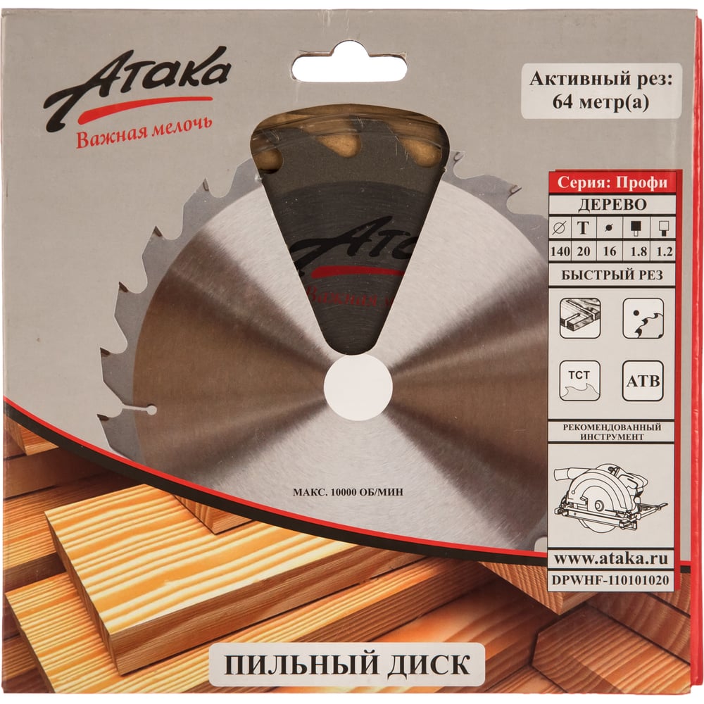 Диск пильный (140 мм; 20T; 16 мм) по дереву профи АТАКА 8078420