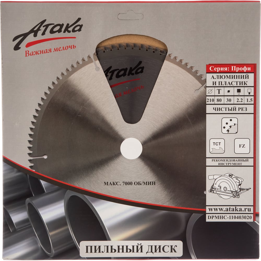 Диск пильный (210 мм; 80T; 30 мм) для алюминия и пластика профи АТАКА 8077820
