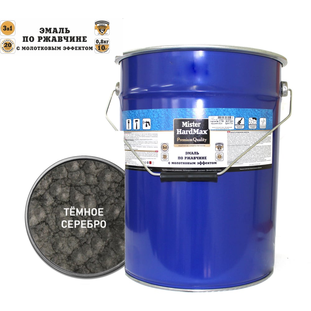 Эмаль по ржавчине с молотковым эффектом HardMax темно-серебристая, барабан 16 кг 4690417070503