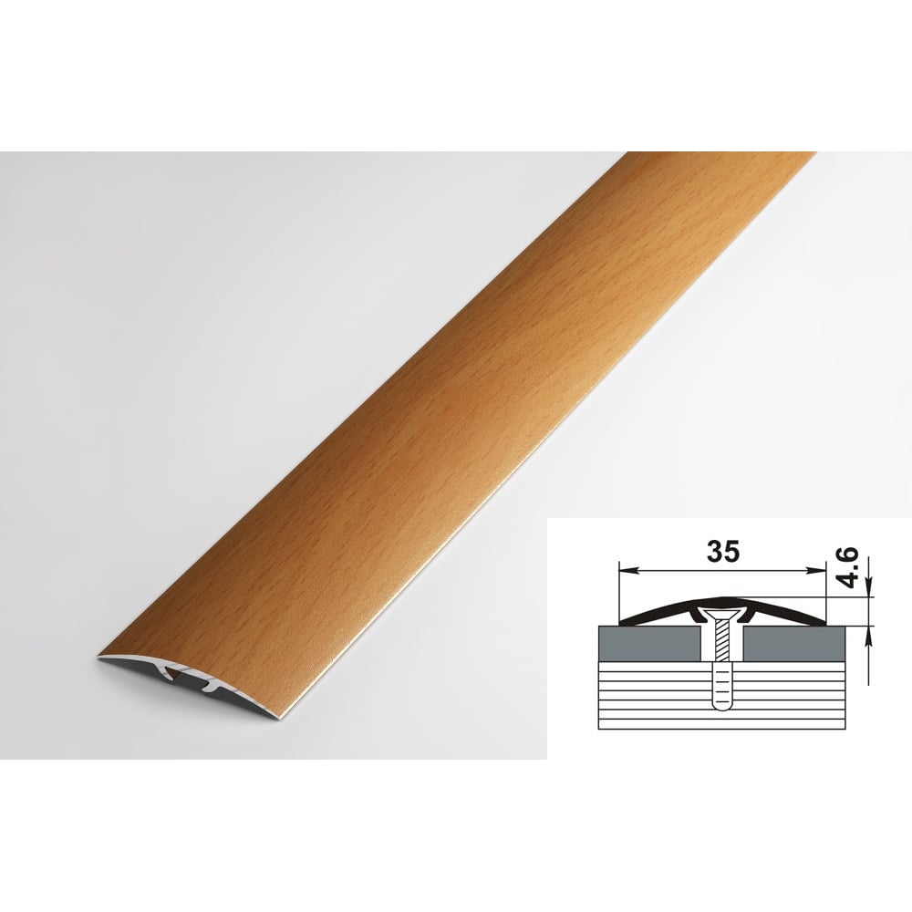 Порог прямой скрытый алюминиевый (35 мм; 0.9 м; декоративный; бук) Лука 00000001490