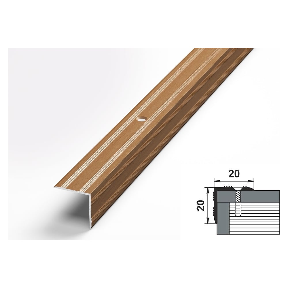 Порог угловой алюминиевый (20х20 мм; 0.9 м; декоративный; бук) Лука 00000001443