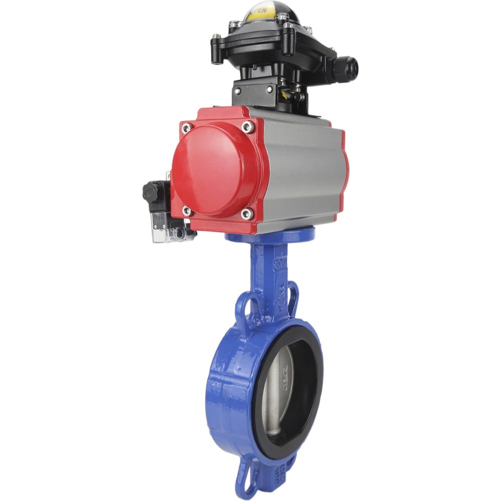 Затвор DN.ru WCB-316L-EPDM Ду40 Ру16 с пневмоприводом, пневмораспределителем, БКВ D050-00274
