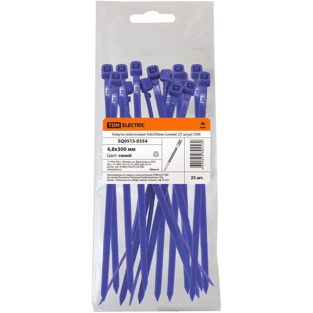 Нейлоновые хомуты TDM ELECTRIC 4,8х300 мм, синий, 25 штук SQ0515-0354