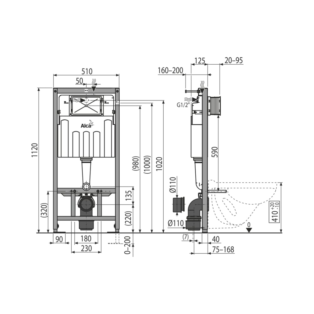 Система инсталляции для сухой установки Alcadrain AM101/1120-0001 00066885