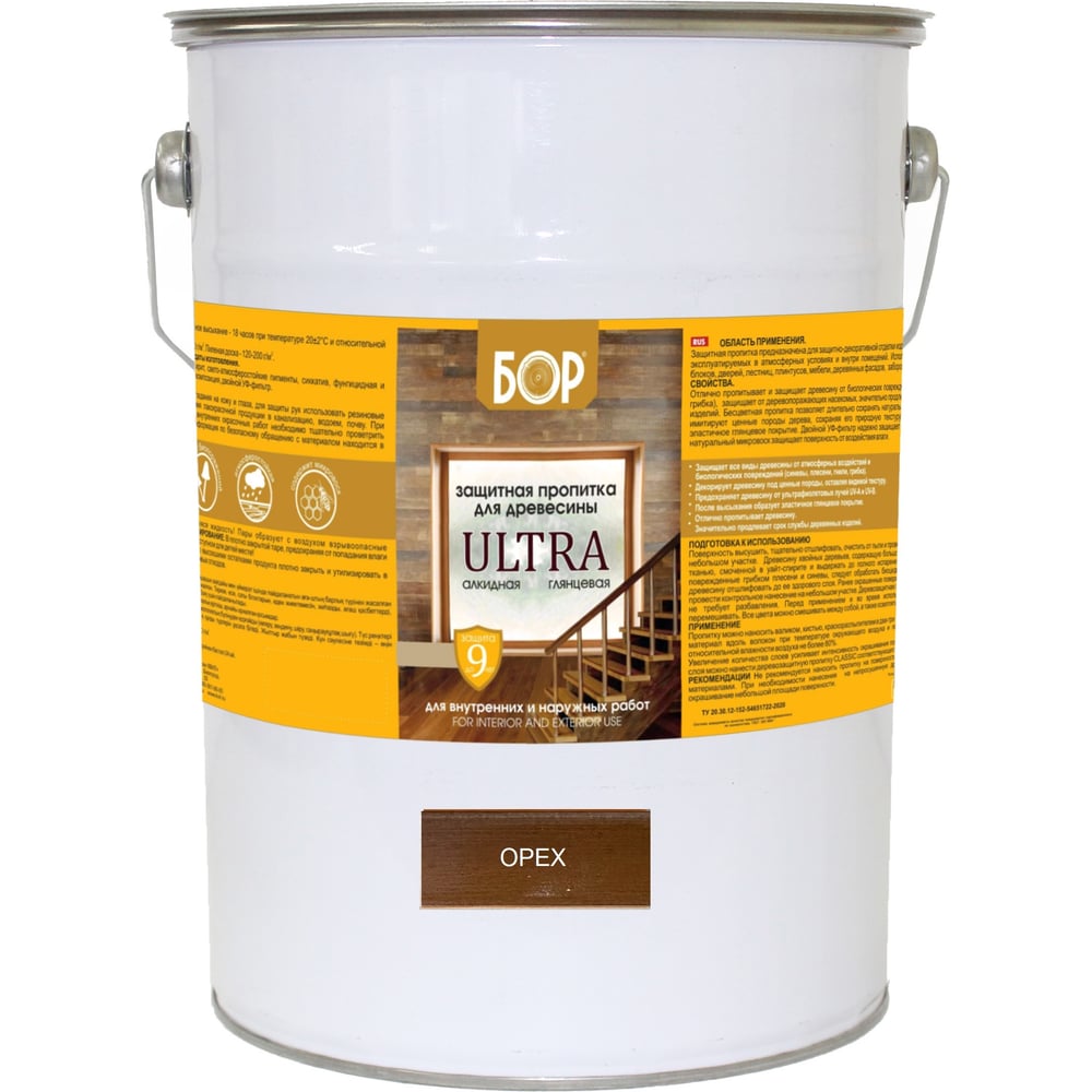 Защитная пропитка для дерева Бор Ultra для наружных работ, орех 8 кг 4690417079575