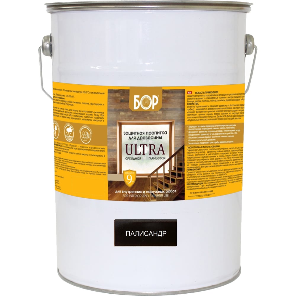 Защитная пропитка для дерева Бор Ultra для наружных работ, палисандр 8 кг 4690417079605
