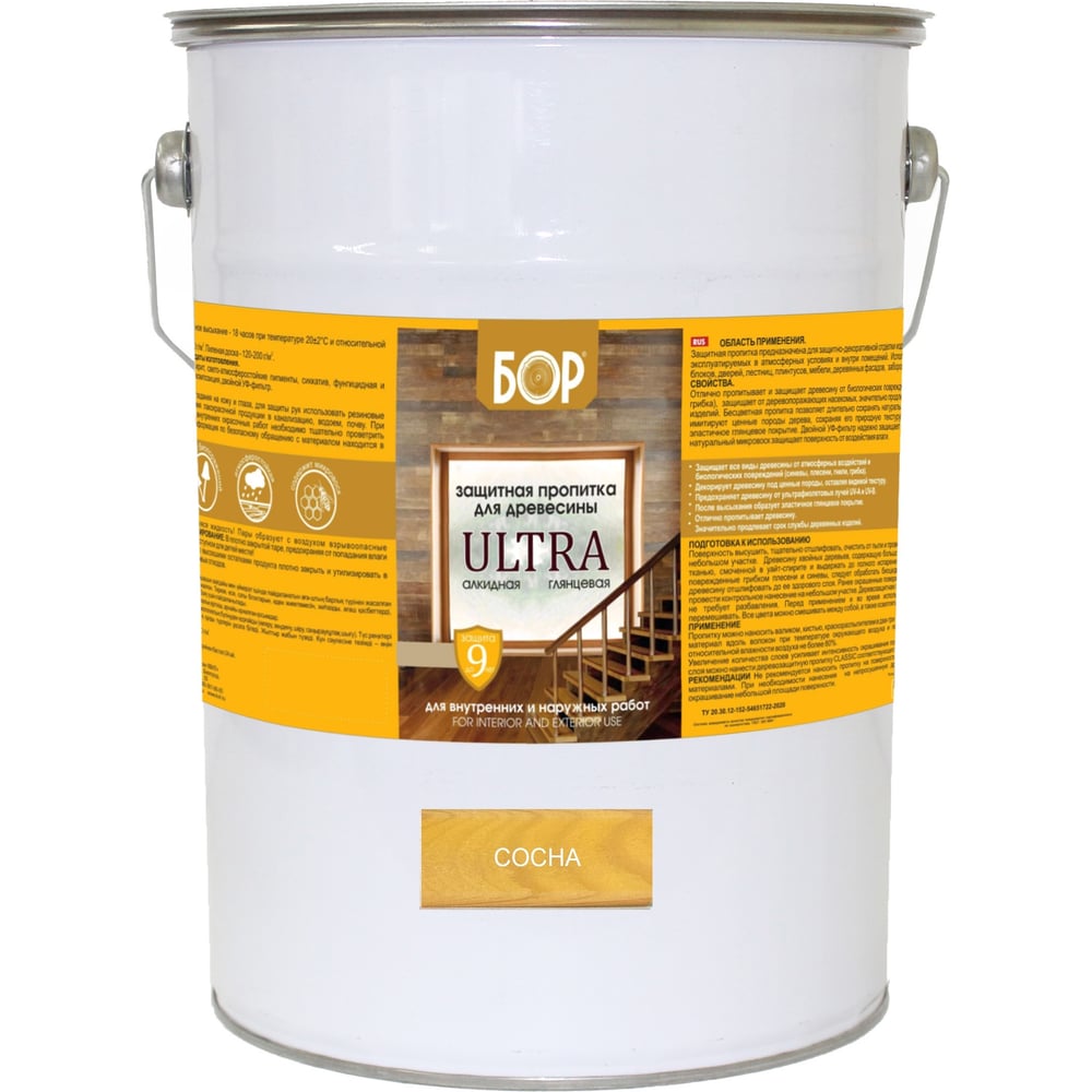Защитная пропитка для дерева Бор Ultra для наружных работ, сосна 8 кг 4690417079483