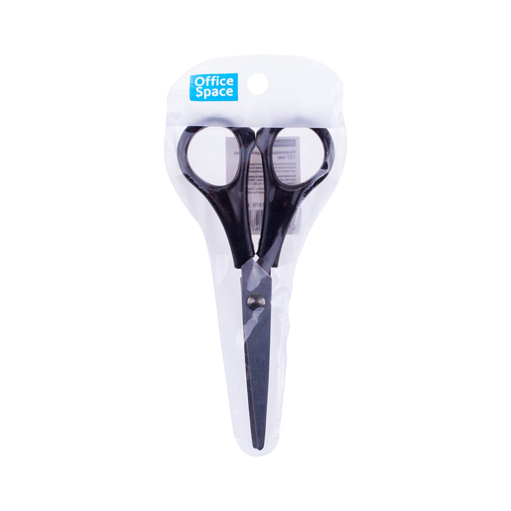 Ножницы Office Space 13,7см, черные ручки, ПВХ чехол с европодвесом S137B_6710