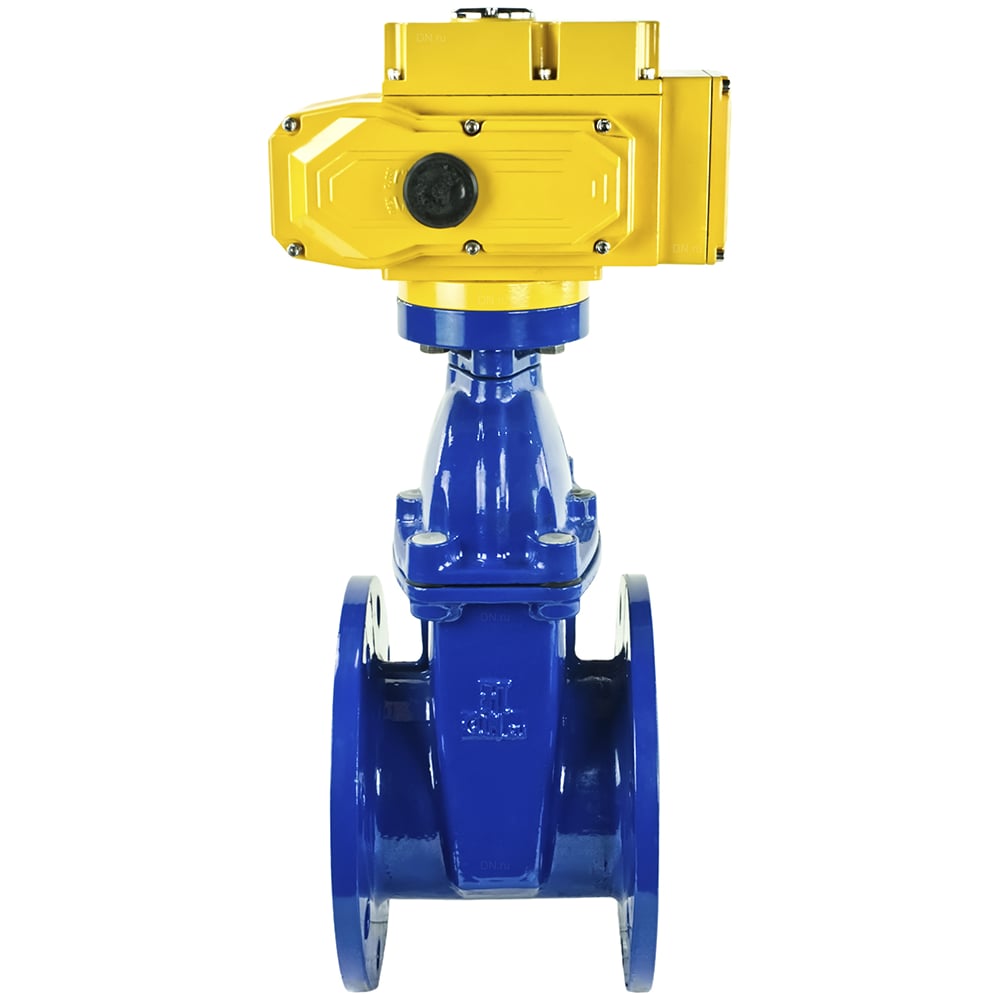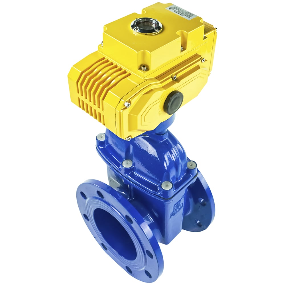 Задвижка клиновая DN.ru 30ч939р Ду150 Ру16 с электроприводом MT-200 380В, цвет - синий D040-05455