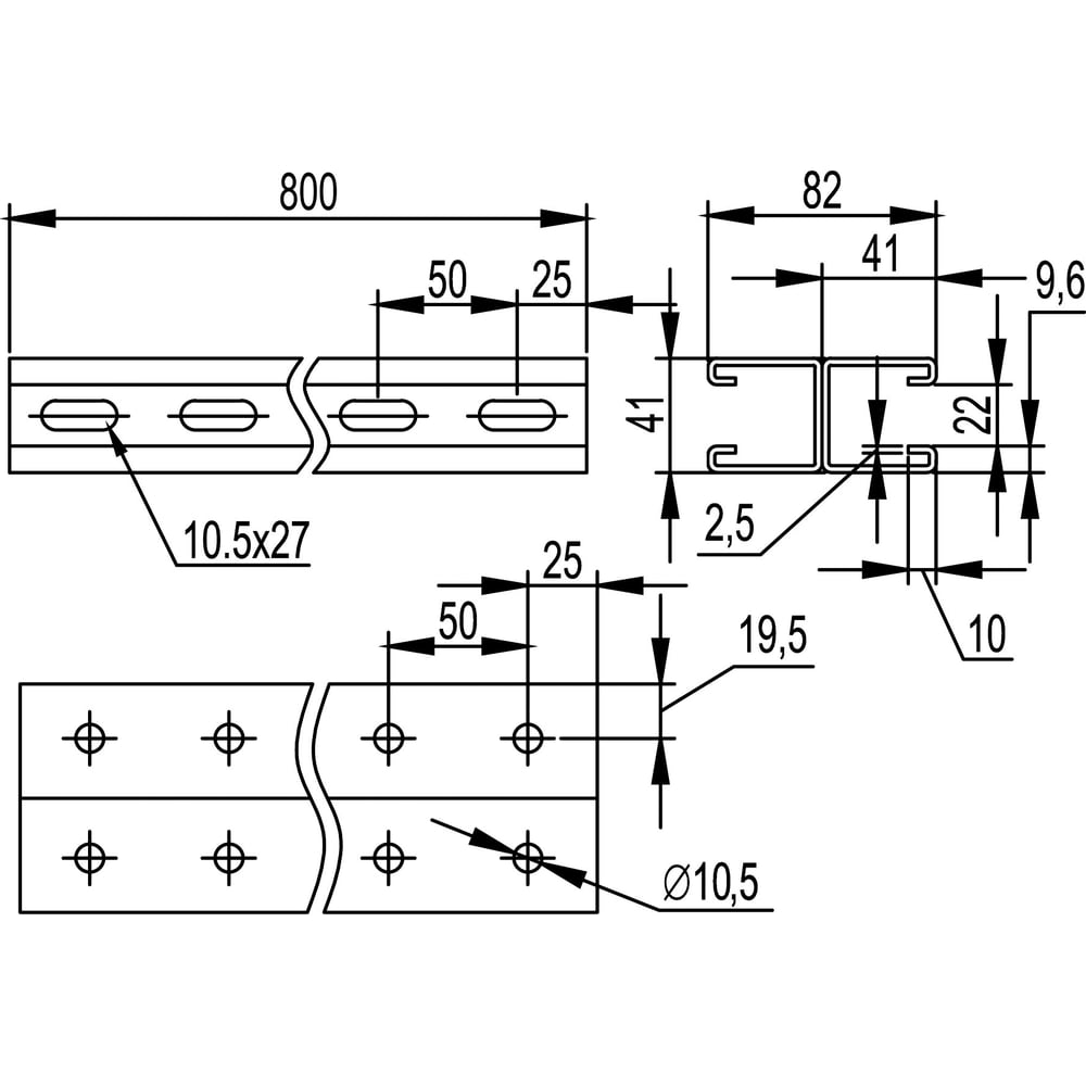 Двойной С-образный профиль DKC 41x41, L800, толщ.2,5 мм, горячеоцинкованный BPD4108HDZ