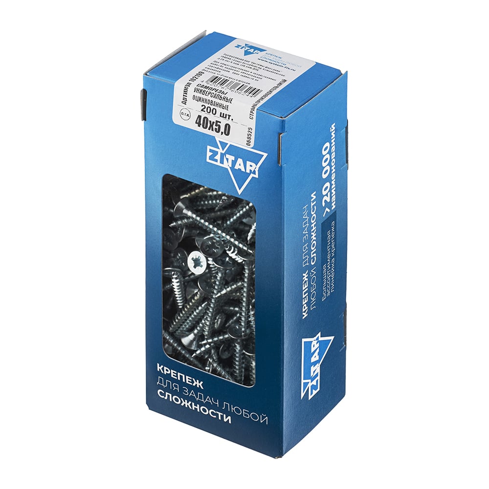Универсальные саморезы, оцинкованные, 40x5,0 мм, 200 шт., коробка с окном Zitar 102199