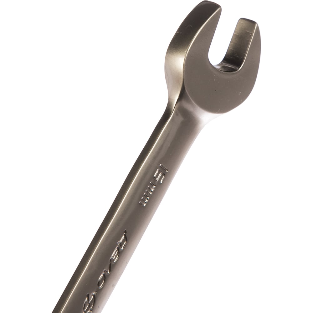 Длина 210 мм Материал 6140CrV Покрытие никелирование Вид миллиметровый Класс товара Профессиональный Вес нетто 0.17 кг Диэлектрическое покрытие нет Трещотка есть Шарнирный механизм нет Размер max (дюйм) нет Размер min (дюйм) нет Количество граней кольцевой головки 12 Размер min (мм) 16 Размер max (мм) 16